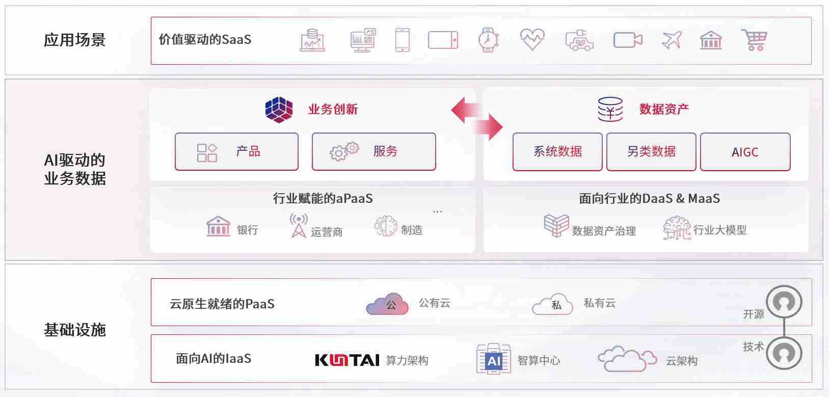 数字时代,,,围绕企业数字化转型的关键要素,,彩神vll数码开创性的提出数云融合战略和技术体系框架,,,,着力在云原生、、、、数字原生、、、AI原生和信创产业上架构产品和服务能力,,为处在不同数字化转型阶段的快消零售、、、汽车、、、金融、、医疗、、、政企、、、教育、、运营商等行业客户提供泛在的敏捷IT能力和融合的数据驱动能力,,,,构建跨界融合创新的数字业务场景和新业务模式,,,助力企业级客户建立面向未来的核心能力和竞争优势,,,,全面推动社会的数字化、、、智能化转型升级。。。。